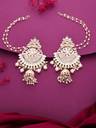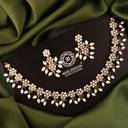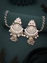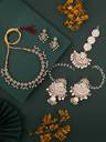 About - Polish: White Gold, Color: White,Gold, Material: Brass, Necklace Type: Choker set, Earrings Type: Drop & Dangle Earrings, Necklace Type: Drawstring, Earrings Back Type: Push Plug, Pack of 1 Choker set with 1 Pair of Earrings and Maang tikka Set for Women and Girls, This statement, handcrafted necklace made using White gold-toned perfect for adding visual character to any ethnic ensemble. This jewellery is specially designed for weddings, traditional ceremonies, festive celebrations, special social gatherings, and other celebratory events.