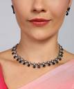 Oxidized Finish: The black oxidized finish not only adds a touch of vintage charm but also enhances the overall aesthetics of the necklace set. This finish gives the piece a rich and antique appearance that complements various outfits., Quality Materials: Crafted from high-quality materials, this necklace set is built to last. The materials are carefully chosen to ensure durability, comfort, and a luxurious feel against the skin., Adjustable Length: The necklace comes with an adjustable chain length, allowing you to customize the fit according to your preference. This ensures the perfect neckline placement for various necklines and outfits.