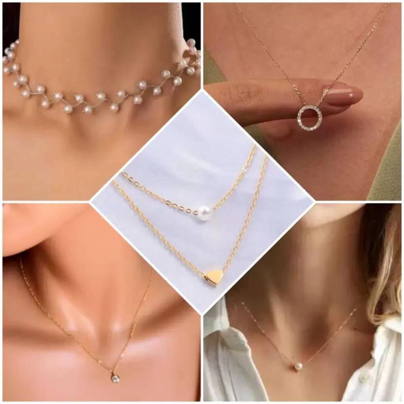 brado jewellery Combo of 5 Traditional 18 inch Daily Wear Necklace Set for Women Pearl, Diamond Gold-plated Plated Brass Necklace