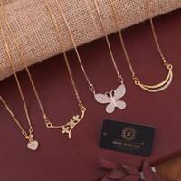 Courtesy of its unique combination of distinct pendant designs, this necklace combo offers versatility to complement different outfits. The diamond-studded small heart, leaves, butterfly, and quarter moon pendant showcases an elegant shiny-toned finish, adding a touch of opulence to your look. Furthermore, this combo allows you to mix and match pendants based on your mood and style, providing endless possibilities for accessorising.