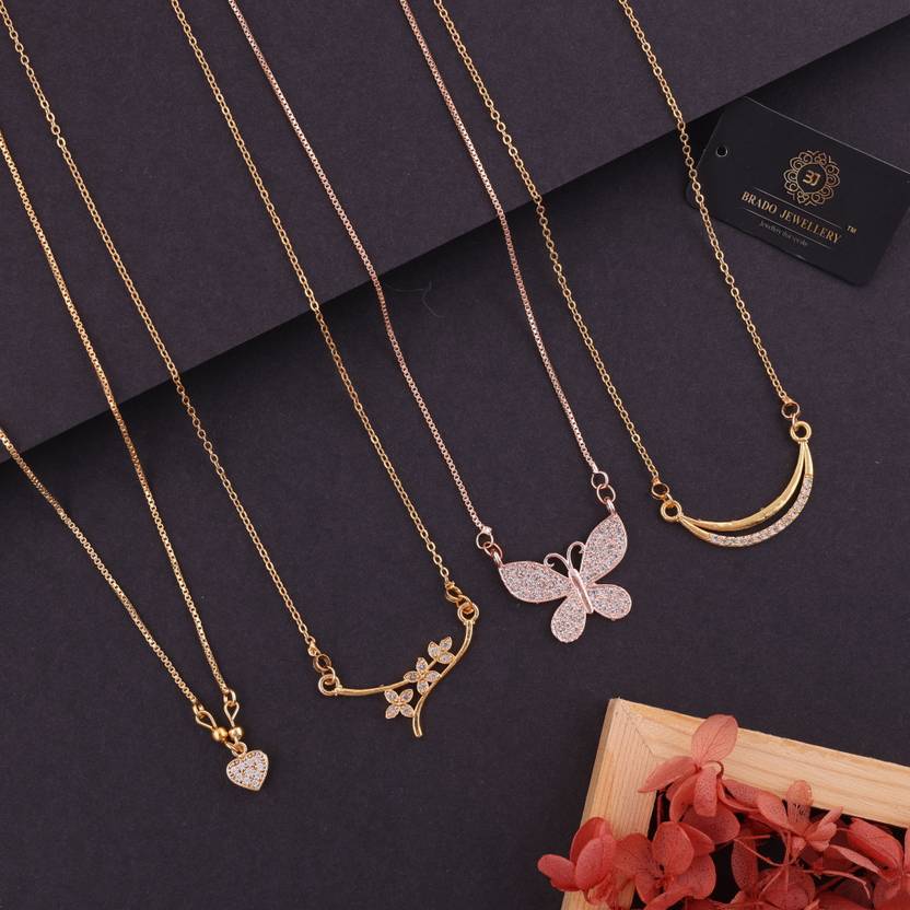brado jewellery Pack of 4 Pendant Chain for women Diamond Gold-plated Plated Alloy Necklace