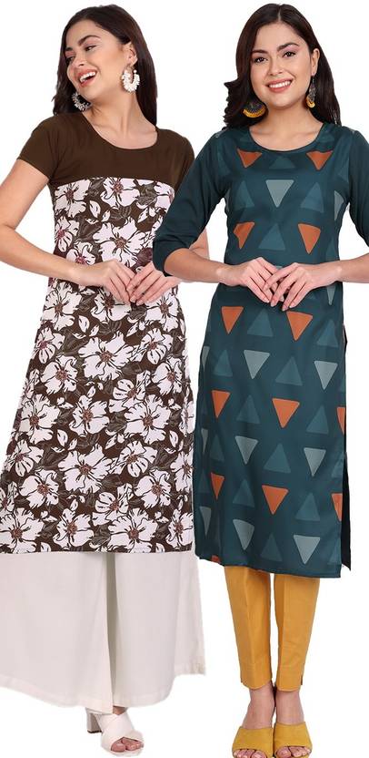 Ethnic Wear Crepe Straight Cut Kurti (Combo Pack Of 2)