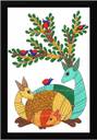 Braj Art Gallery Mother and Baby Deer Gond Painting Photo Frame Digital Reprint 19.5 inch x 13.5 inch Painting (With Frame)