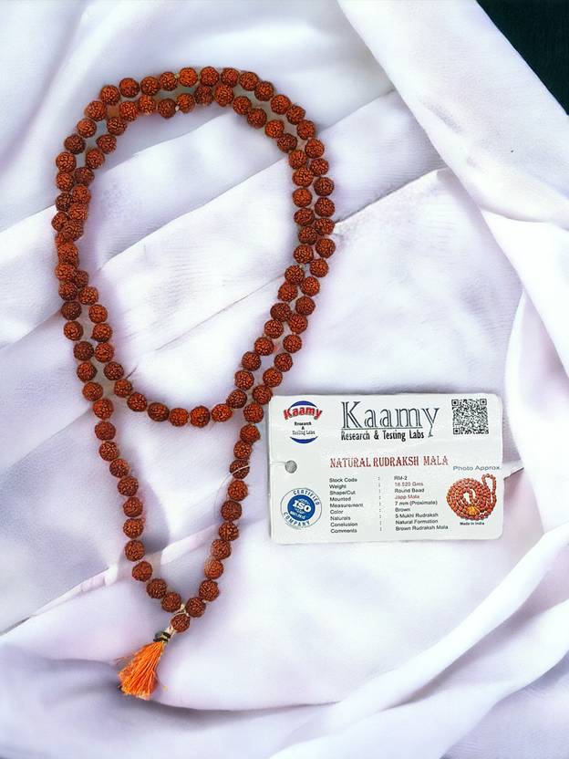 This is Pure 5 Mukhi Natural Medium Size Rudraksha Beads Mala, Which is the symbol of Supreme Lord Shiva. It is 100% Natural & Original 108 + 1 Beads 5 Mukhi Rudraksha Mala Lab Tested With Certificate Weight 90 Gm to 110 Gm, Size 11 MM To 14 MM because Natural beads Rudraksha Mala doesnt come in accurate weight or size. Every Mala is certified in authorised Lab and Certificate comes in the package with Gangajal and Chandan from Kashi. It will be very helpful for Mantra Jaap because of its purity. This Spriritual Energetic 5 Mukhi Medium size Rudraksha Mala always gives healthy and wealthy life to the wearer. Because of these natural beads it brings happiness and prosperity in life. It is useful for any God or Goddess Mantra jaap. This Natural and powerful Rudraksha Mala kills all negative spirits or black magic from the life of wearer and help him to achieve luxurious life.