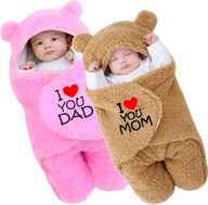 BRANDONN Embroidered Crib Hooded Baby Blanket for AC Room (Poly Cotton, Beige Dad & Grey Mom)
