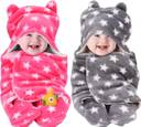 BRANDONN Fleece Baby Bed Sized Bedding Set (Pink, Grey, 1 Baby Bedding)