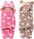 BRANDONN Printed Single Hooded Baby Blanket for Mild Winter (Poly Cotton, Beige, Pink)