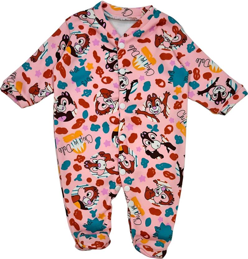 BRANDONN Romper For Baby Boys & Baby Girls Casual Printed Polycotton (Pink, Pack of 1)
