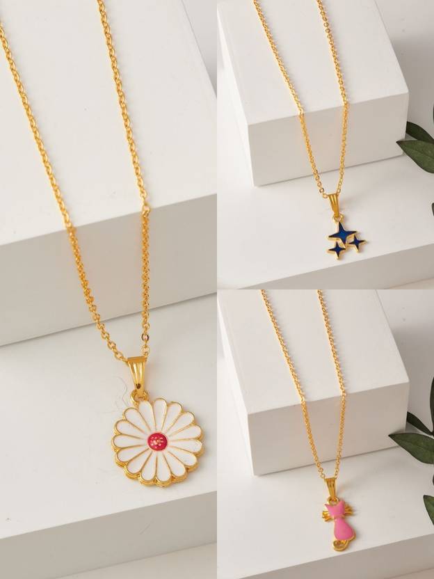 Brandsoon Korean jewellery Gold Plated Pendant & chain for Girls/Women(3 Combo)