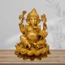 BrassAura Brass Ganesh Sitting on lotus Statue home and décor and gifts item 8 Kg Decorative Showpiece - 28 cm (Brass, Gold)