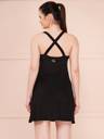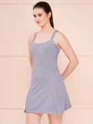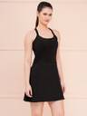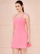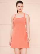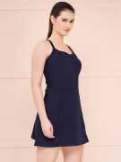 This versatile swim dress merges the ease of a one-piece with the grace of a mini dress—and now, it's equipped with built‑in padding for extra support. Crafted from lightweight nylon/spandex, it ensures quick-drying performance and gentle stretch. The structured bust includes a removable padded shelf liner, offering shape and coverage. The flared A-line skirt skims the hips, providing smooth coverage over swim bottoms, while criss-cross straps accentuate the back with sporty elegance.