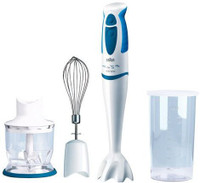This hand blender features a simple speed control mechanism for single-handed use. It comes with two attachments, a whisker and chopper so you can make a variety of dishes in a jiffy.
