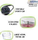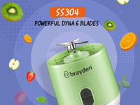 You can conveniently prepare your favourite juices and smoothies even on the go with the help of the Brayden Fito Atom Rechargeable Blender. It delivers multiple wireless blending sessions on a single charge, thanks to its up to 2000 mAh rechargeable battery. Additionally, it is convenient to charge this blender using a USB port on a laptop, powerbank, regular outlet, or any device that features a USB port. Moreover, with an up to 3.7 V Opti-power motor and SS304 Dyna6 stainless steel blades, this blender enables you to rapidly and easily blend your favourite fruits or milkshakes.
