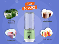 You can easily control this blender with your fingertips. Safety and aesthetics are combined in the twin touch safety button with an indicator LED light. And, only when the bottle unit is securely fastened to the motor unit will this portable juice blender function.