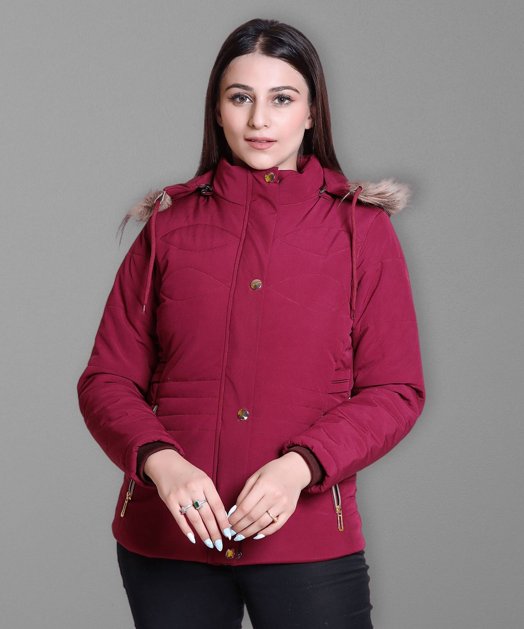 Introducing the Brazo Women Jacket: warm fur lining, ribbed cuffs, zipper closure, detachable cap. Stylish, cozy, and functional. Perfect for colder seasons. Stay warm and chic with luxurious fur lining. Ribbed cuffs for a secure fit. Easy zipper closure. Detachable cap for versatility. A statement piece for any occasion. Fashion meets function in this must-have winter jacket.