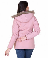 The jacket is created to be a fashion statement, seamlessly combining style with functionality. It may feature trendy elements like faux fur trim on the hood, decorative zippers, metallic accents, or other embellishments that add a touch of glamour to the overall appearance.