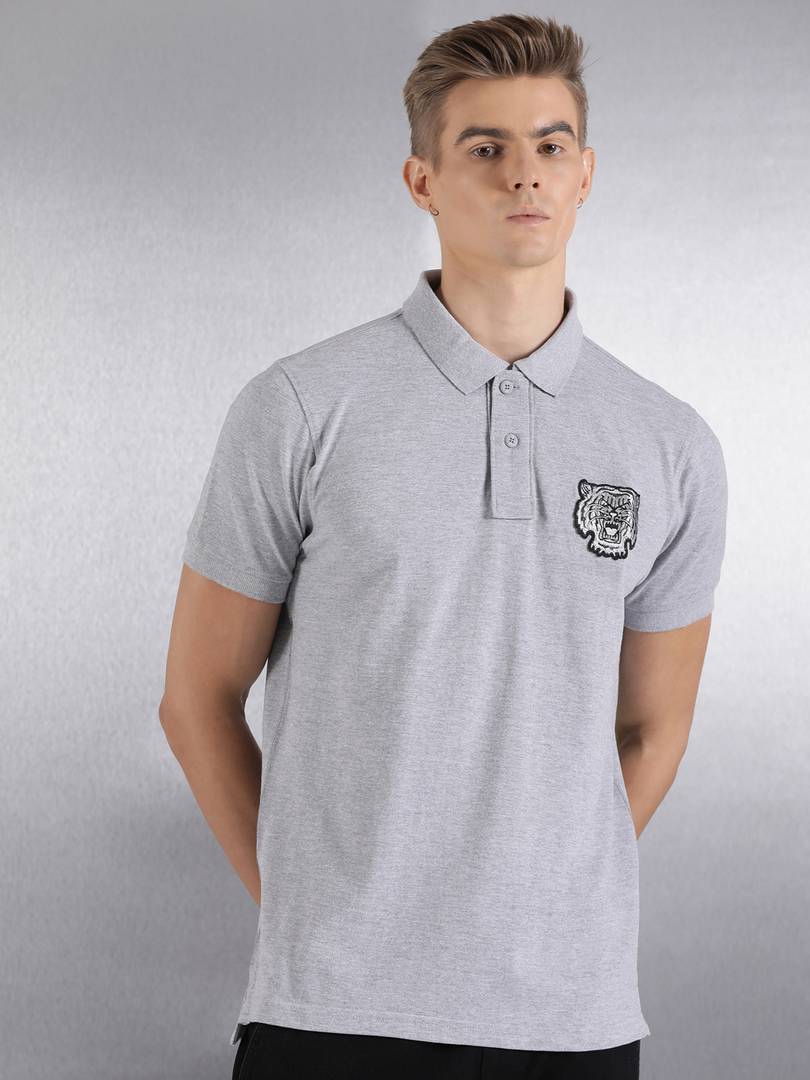 Men Solid Polo Neck Cotton Blend Grey T-Shirt