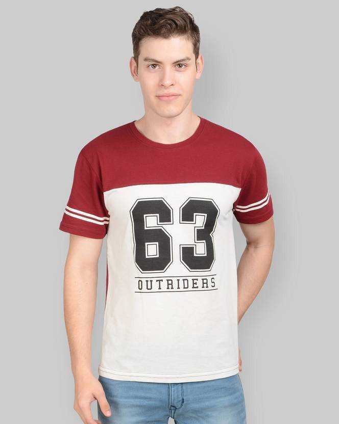 Men Printed Round Neck Cotton Blend Red, White T-Shirt