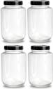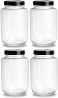 Brezzycloud Glass Pickle Jar - 2000 ml, 2 kg (Pack of 4, Clear, Black)