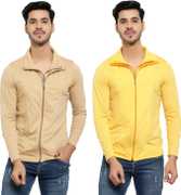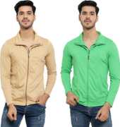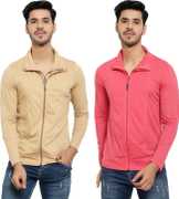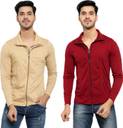 Bribzy Solid Men Polo Neck Maroon, Beige T-Shirt