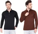 Pack of 2 Men Solid Polo Neck Cotton Blend Brown, Black T-Shirt