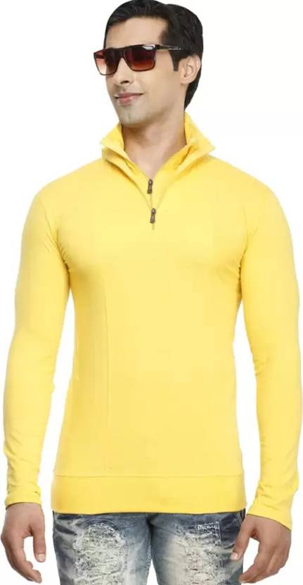 Tresna Trendz Solid Men High Neck Yellow T-Shirt
