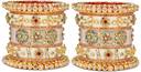 Inspired by the latest designs, these Bridal Chuda or Chura Bangles are crafted to enhance your bridal look. The inclusion of stone, kundan, and pearl elements reflects a blend of tradition and contemporary elegance. The pack of 1 Pair offers affordability without compromising on quality, making it an ideal choice for the discerning bride.