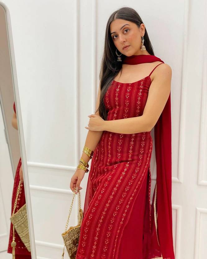 ALTECIA Embroidered Kurta, Palazzo & Dupatta Set