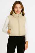 Stay cozy and stylish with this chic sleeveless puffer jacket. Designed with a high-neck collar and front zip closure, it offers a perfect balance of comfort and warmth. The padded structure adds volume while keeping it lightweight, making it ideal for layering over your favorite tops. Functional side pockets complete the look, providing both practicality and a modern, casual edge.