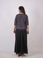 The round neck of the top not only frames your face but allows you to add unique touches by pairing it with different jewellery pieces. The half sleeves allow for ease of movement and maintain breathability to keep you relaxed. They addiitonally let you pair the set with your favourite wrist accesories, allowing you to add your own touch.