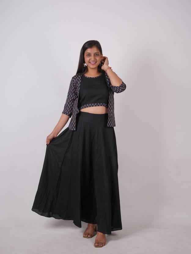 the brij fashions Women Crop Top Skirt Ethnic Jacket Set