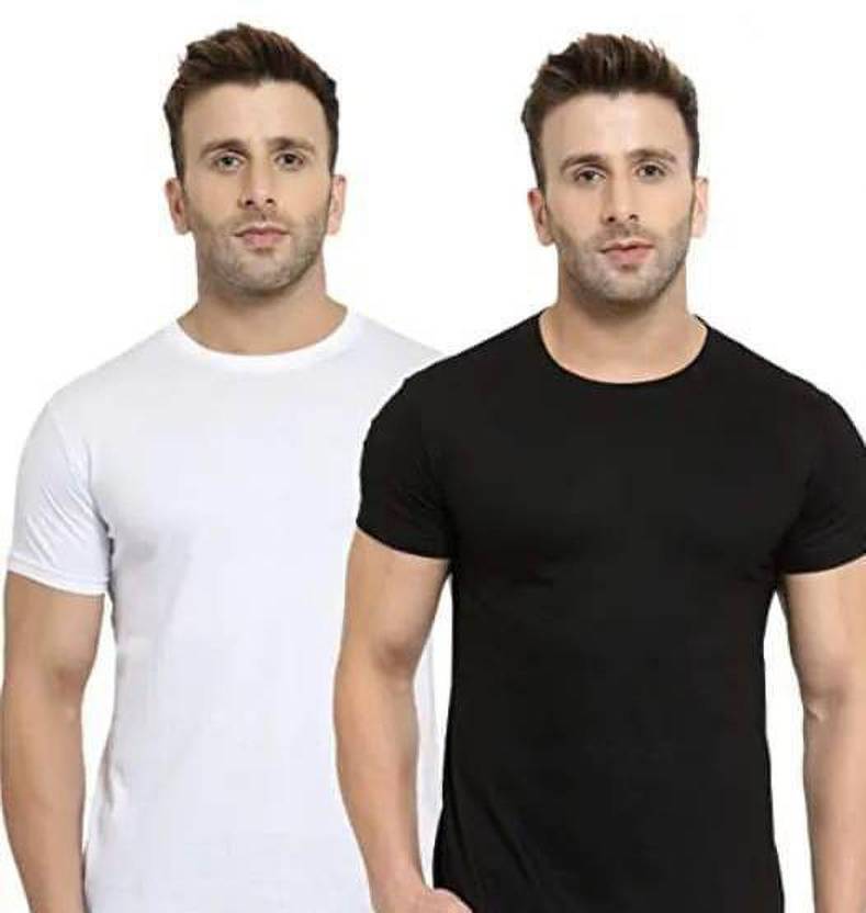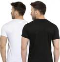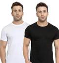 Pack of 2 Men Solid Round Neck Polyester White, Black T-Shirt
