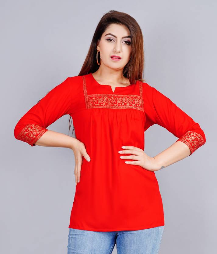 Brijam Casual Embroidered Women Red Top