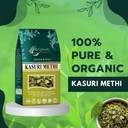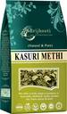 Brijbooti Kasturi Methi, also known as dried fenugreek leaves, is a popular herb used in Indian cuisine. These aromatic leaves, called Kasuri Methi in Hindi, Menthulu in Telugu, Uluva in Malayalam, Ventaya Vitaikal in Tamil, Mente Kalu in Kannada, and Methi dane in Marathi (when referring to leaves), offer a distinct bitter flavor. They enhance the taste of curries, dals, parathas, and various other dishes. Rich in nutrients, Kasturi Methi is known for its digestive and anti-inflammatory properties, making it a beneficial addition to both savory and health-conscious meals