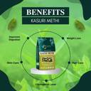 Brijbooti Kasturi Methi, also known as dried fenugreek leaves, is a popular herb used in Indian cuisine. These aromatic leaves, called Kasuri Methi in Hindi, Menthulu in Telugu, Uluva in Malayalam, Ventaya Vitaikal in Tamil, Mente Kalu in Kannada, and Methi dane in Marathi (when referring to leaves), offer a distinct bitter flavor. They enhance the taste of curries, dals, parathas, and various other dishes. Rich in nutrients, Kasturi Methi is known for its digestive and anti-inflammatory properties, making it a beneficial addition to both savory and health-conscious meals