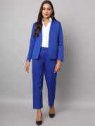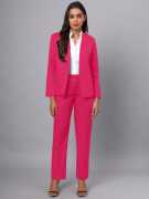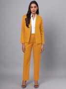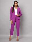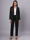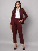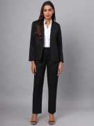 BRINNS Formal Blazer with Trouser. Solid Regular fit open front blazer is collarless has long sleeves and 2 Pockets. Solid Mid rise trouser has a zip fly with a button and a hook & bar closure, two pockets and a waistband with a belt loops. Elegant Women’s Formal Solid Suit – Timeless Professional Style
