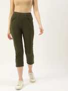 High-rise solid capris, waistband with slip-on closure, 2 pocket, Made from 100% pure cotton for breathability and comfort, Functional side pockets for convenience, Easy to mix and match with casual tops