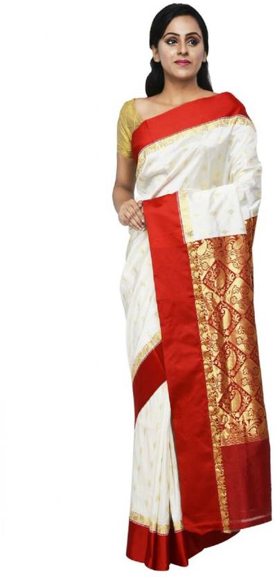 BRISHTI CREATIONS Solid/Plain Garad Tussar Silk Saree (White)