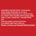 Refined Wheat Flour, Sugar, Edible Vegetable Oil and Interesterified Vegetable Fat, Cocoa Solids, Invert Syrup, Raising Agents, Edible Starch, Iodised Salt and Emulsifier.