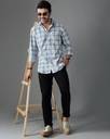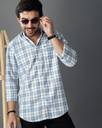 British Club Men Checkered Casual White, Light Blue, Dark Blue Shirt