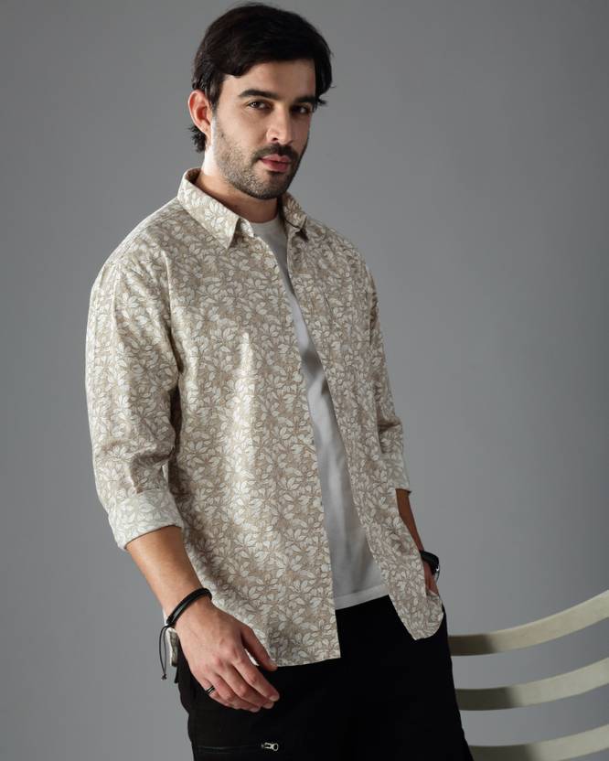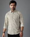 British Club Men Printed Casual Grey, White Shirt