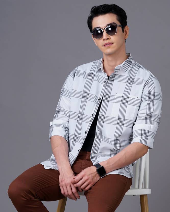 British Club Men Printed Casual White Shirt