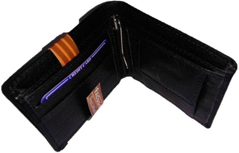 Men Black Artificial Leather Wallet - Mini (3 Card Slots)