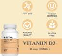 BRIYO Vitamin D3 1000 IU - 90 Softgels For Bone Health and Immune Support (90 No)