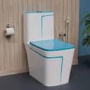 BRIZENTA BR2003 White Ceramic S TYPE /Water Closet/Commode With Soft Close Toilet Seat Western Commode (WHITE + T.BLUE LINE)