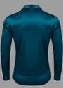 This is a men's long-sleeved shirt crafted from a lustrous yellow satin fabric, offering a smooth and shiny finish. It features a classic collar, a full button-down front with contrasting white buttons, and buttoned cuffs. The shirt has a tailored fit, designed to complement the wearer's physique. Its elegant material and vibrant color make it suitable for party wear or festive occasions. This shirt can be paired with black trousers, dark-wash jeans, or dress pants for a sophisticated and striking look.