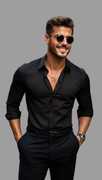 Men Regular Fit Solid Spread Collar Party Shirt
