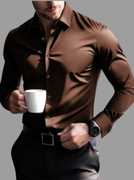 BROCON Men Solid Party Brown Shirt