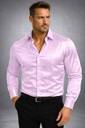 This is a men's long-sleeved shirt crafted from a lustrous yellow satin fabric, offering a smooth and shiny finish. It features a classic collar, a full button-down front with contrasting white buttons, and buttoned cuffs. The shirt has a tailored fit, designed to complement the wearer's physique. Its elegant material and vibrant color make it suitable for party wear or festive occasions. This shirt can be paired with black trousers, dark-wash jeans, or dress pants for a sophisticated and striking look.