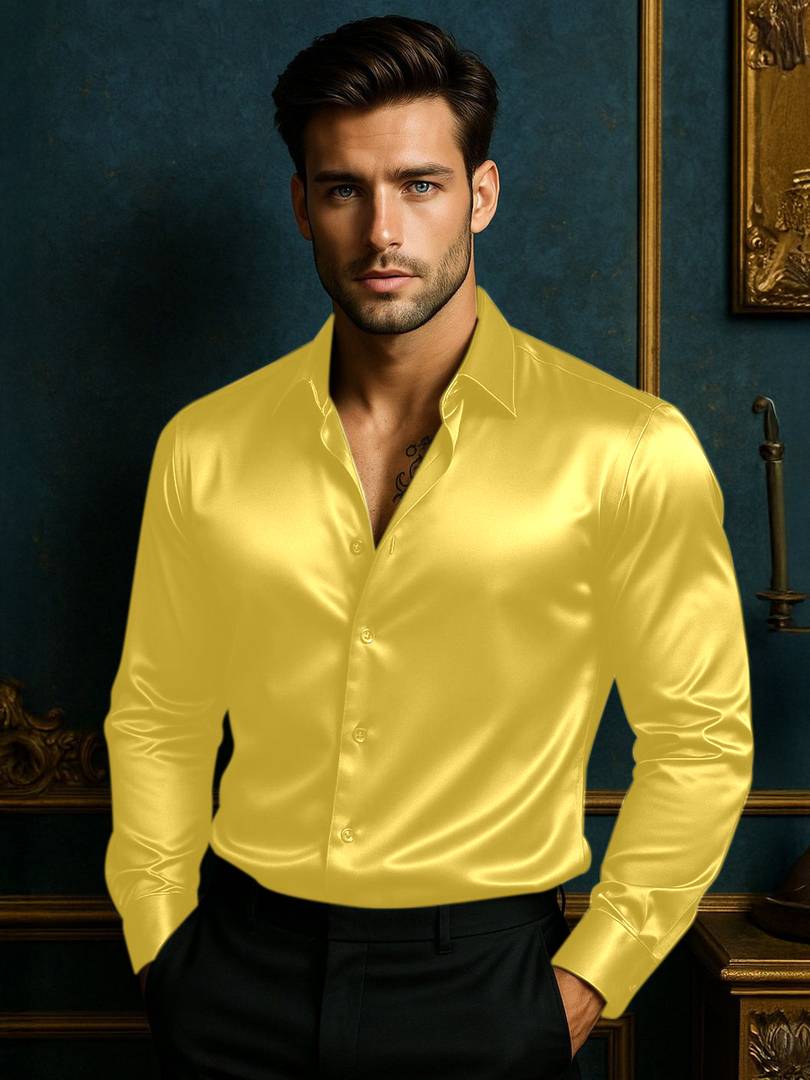 Upgrade your style with this premium Menβs Satin Shirt designed to deliver a rich and elegant look. Made from high-quality satin fabric, it features a smooth texture and subtle shine that adds a touch of luxury to your outfit. The lightweight and breathable material ensures all-day comfort, while the modern fit enhances your overall appearance. Ideal for parties, weddings, festive occasions, and evening wear, this satin shirt pairs effortlessly with jeans or trousers for a stylish and confident look. A perfect choice for men who prefer classy fashion with comfort.